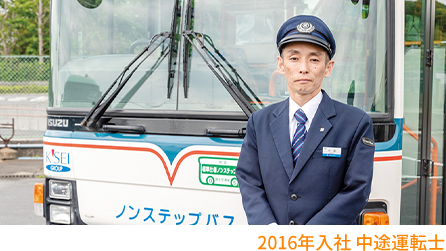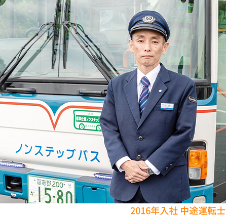 A. 運転士募集の広告を見て、”バス運転士とはどのような仕事なのかな”と興味を持ったのがきっかけでした。安定した企業で、社会のために貢献できる、とてもやりがいのある仕事だと思ったからです。